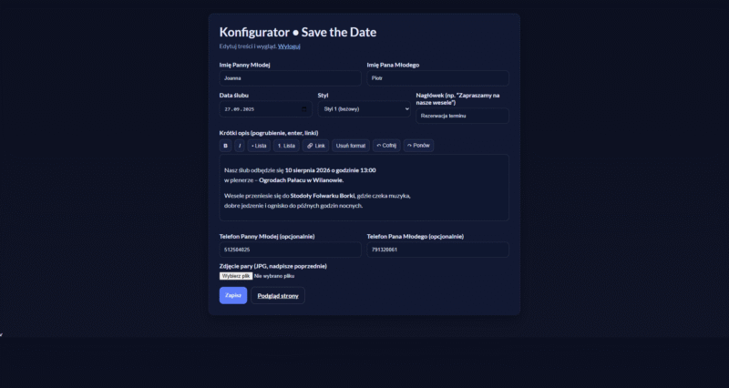 Save the date – Strona internetowa Wesela